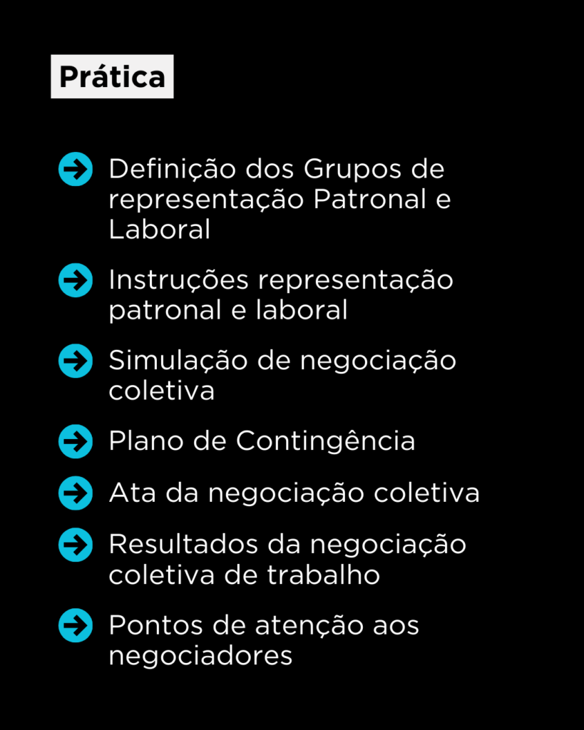 Aprender na prática: participando de simulações relacionadas à dinâmica das negociações, com destaque para as situações mais críticas.